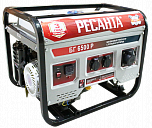 Мощность 5 кВт. Напряжение 220В. Генератор оснащен бензиновым двигателя, имеющего воздушное принудительное охлаждение, электронное зажигание, ручное пусковое устройство, электростартер и топливный бак на 22 литра, а так же однофазной синхронной генераторной машиной (альтернатором). Двигатель вырабатывает мощность в 14 л.с. Запас топлива позволяет агрегату бесперебойно работать на протяжении порядка 10-ти часов. Имеется функция сварки + розетка для потребителей 220 В и клеммы для потребителя 12 В, контроль за уровнем масла, защита от короткого замыкания.