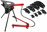 12 тонн. На подставке. Трубогиб для трубы диаметром от 1/2 до 2 дюймов (15-50 мм) с толщиной стенки трубы (2,75-3,5 мм). Ход поршня 230 мм. В комплекте 6 пуансонов: 1/2", 3/4", 1", 1-1/4", 1-1/2", 2".