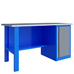 Верстак однотумбовый поставляется в разобранном виде. Нагрузка на столешницу до 600 кг. Стандартный цвет: корпус - серый глянец RAL 7030, ящики и двери тумб - синий RAL 5017. Размеры:855x1600x700 мм. Вес: 67 кг.