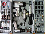 Полный набор пневмоинструмента слесарный – 71предмет. Гайковерт слесарный 320Nm, для болтов 11-19мм. угловой гайковерт 68Nm”, зачистная машинка 22000 об/мин, пневмозубило с набором зубил, продувочный пистолет, набор бит, набор ударных головок, набор быстросъемов, набор шарошек, набор абразивных наконечников, переходники и масло.