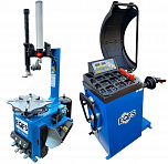 Комплект из полуавтоматического шиномонтажного стенда TS-21, для колёс 99% автопарка России. Для дисков: 11÷20”. В комплекте: пистолет для подкачки шин + монтажка + пластиковые накладки на зажимные кулачки + регулятор давления с влагоотделителем и манометром. + TS-550 Балансировочный станок (с лазером) Для дисков: 10÷24” (254-609 мм). В комплекте: кожух с автозапуском + клещи + кронциркуль + быстрозажимная гайка + набор конусов.
