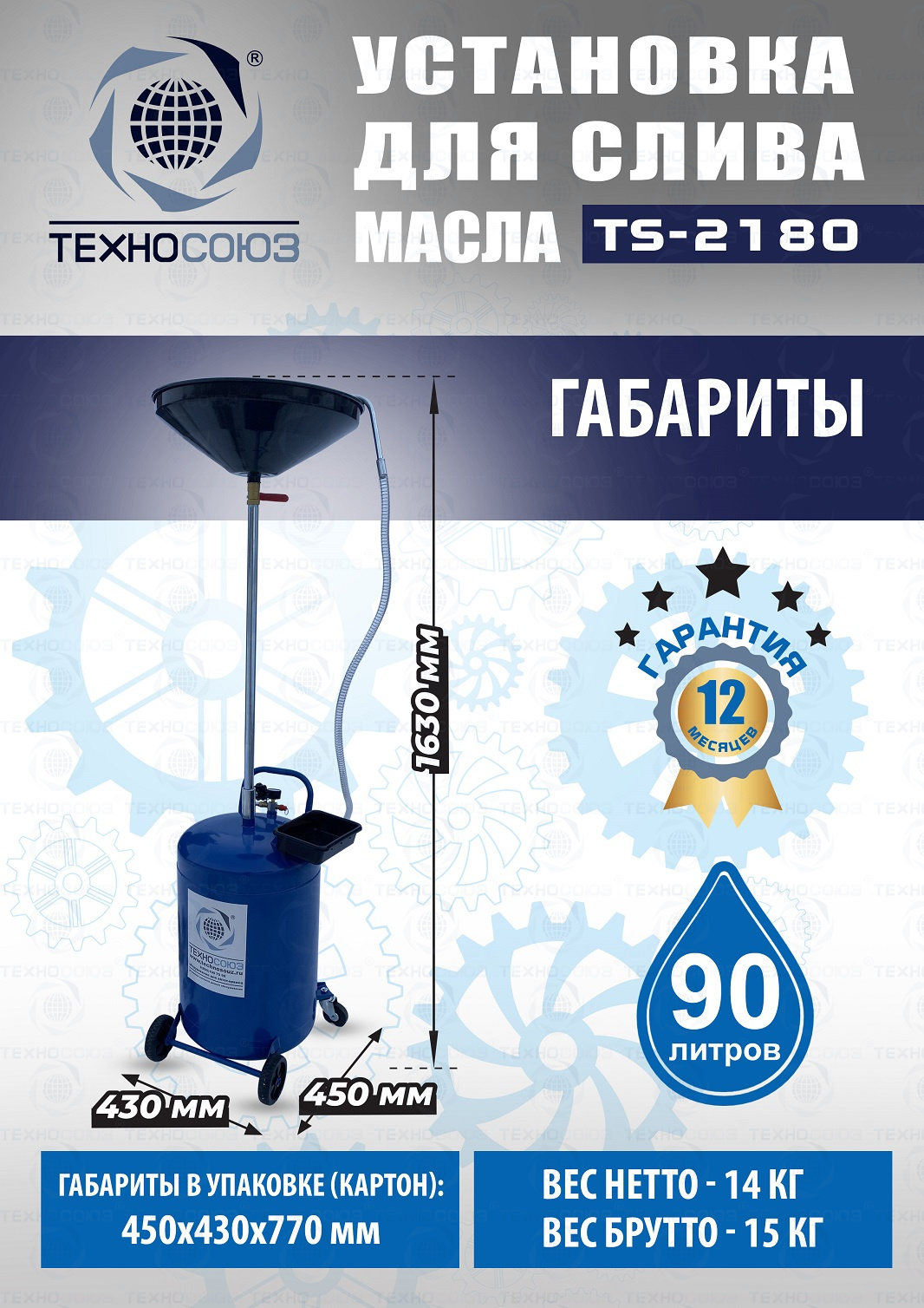 Технические особенности TS-2180 установки для слива масла: